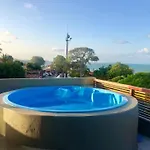 Los huéspedes de la villa Luxury House 3 Suites Pipa Centro Vista Mar Com Jacuzzi pueden relajarse con las instalaciones de spa, como un jacuzzi.